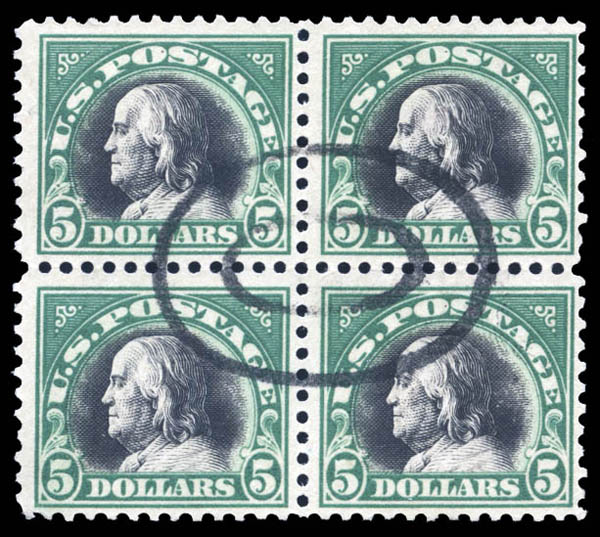 1918, $5 Franklin, deep green & black (Scott 524), beau à très beau. Scott $225.