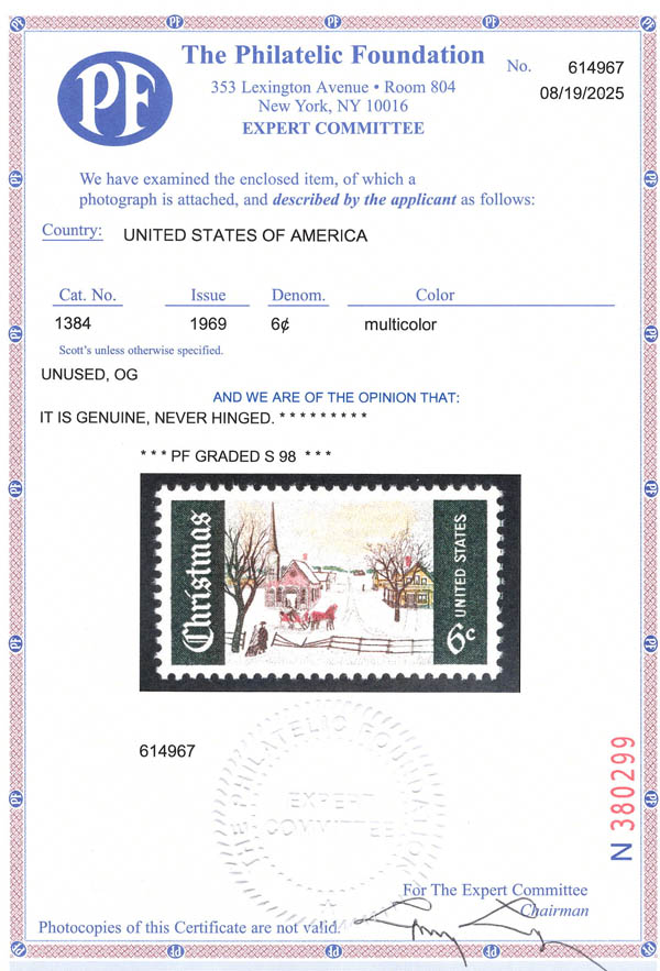 1969, 6¢ Christmas (Scott 1384), SUP 98. SMQ $35 for a 95.