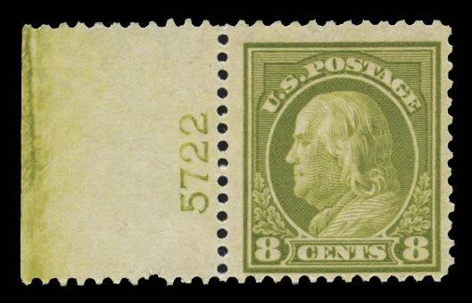 Lot 230![]() ![]() 1912, 8¢ pale olive green (Scott 414), plate number single, excellent color, a lovely example, o.g., never hinged, Fine to Very Fine, with photocopy of 2018 P.S.E. certificate for strip. Scott $90. Estimate $75 - 100. |