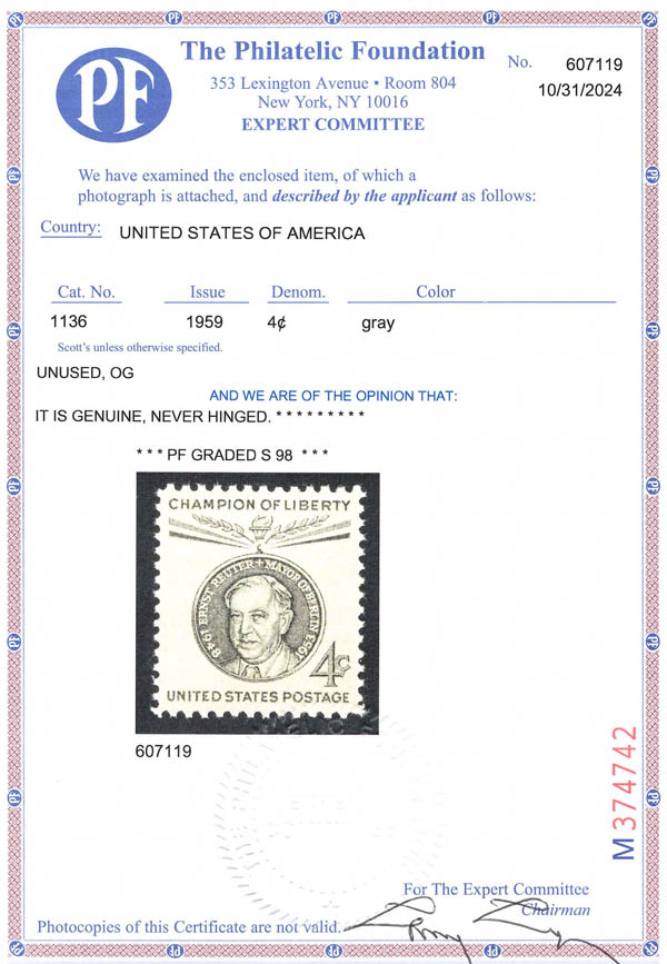 1952-59, a group of 4 superb graded stamps (Scott 1006//1136), SUP 98. SMQ $350.