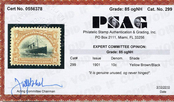 1901, 10¢ Pan-American (Scott 299), très beau à superbe. Scott $325. SMQ $500.