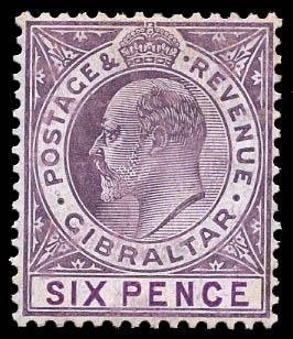 Gibraltar, 1912, King Edward VII, 6d dull purple & bright purple, Multiple Crown CA watermark (SG 70. Scott 56a), beau. SG £180 ($230). Scott $160.