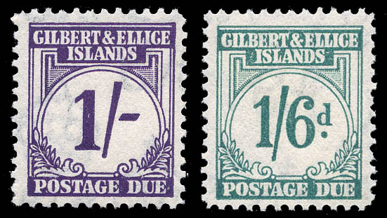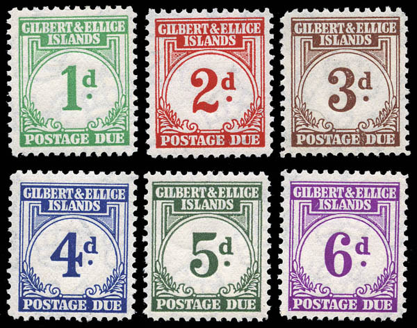 Gilbert & Ellice Islands, Postage Dues, 1940,1d to 1s6d complete (SG D1/D8. Scott J1-J8), set of 8, beau à très beau. SG £180 ($230). Scott $180.