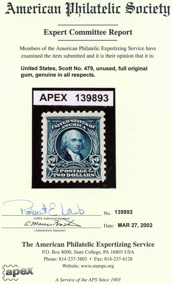 1917, $2 Madison, perf. 10 (Scott 479), très beau. Scott $475.