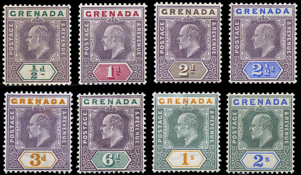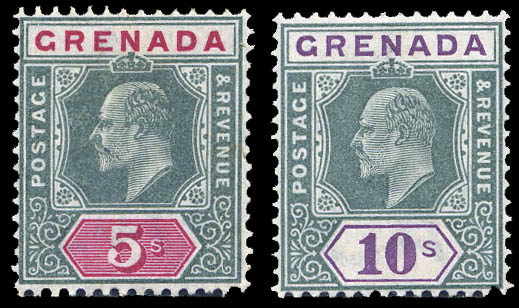 Grenada, 1902, King Edward VII, ½d to 10s complete (SG 57/66. Scott 48-57), set of 10, beau à très beau. SG £250 ($320). Scott $305.