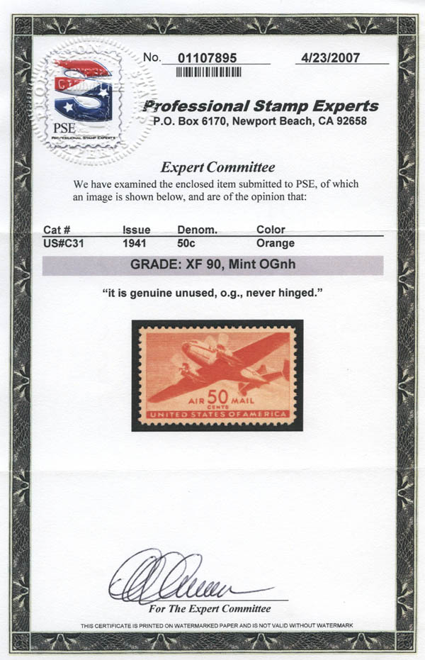 Airmail, 1941, 50¢ Transport (Scott C31), superbe. SMQ $25.