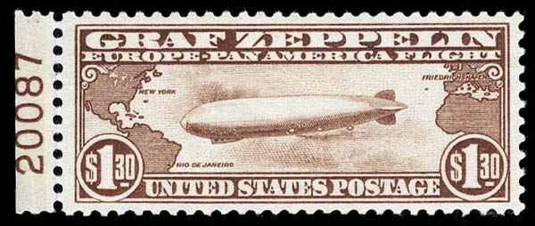 Airmail, 1930, $1.30 Graf Zeppelin (Scott C14), superbe, qualité impeccable. Scott $575.