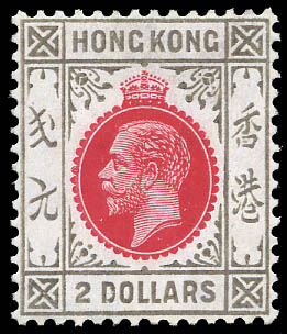 Hong Kong, 1921, King George V, $2 carmine red & gray black, Multiple Script CA watermark (SG 130. Scott 144), très beau. SG £140 ($180). Scott $135.