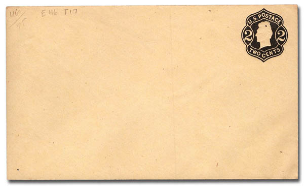 Envelope, 1863, Nesbitt 4th Issue, 2¢ black on buff, "U.S. POSTAGE" above, "2" touches frame (Scott U46), beau à très beau. Scott $80.