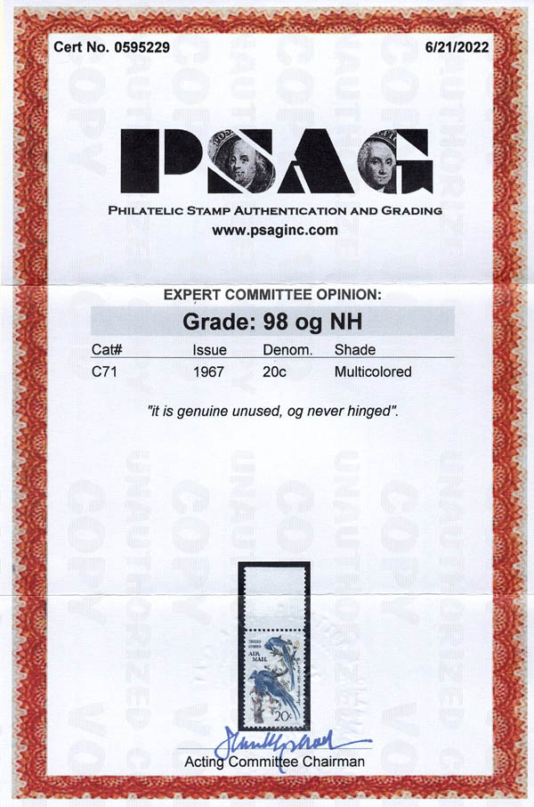 Airmail, 1967, 20¢ Audubon (Scott C71), superbe. SMQ $60.