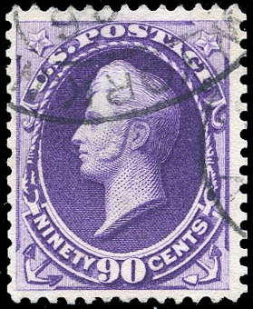 1888, 90¢ Perry, purple (Scott 218), beau à très beau d'aspect. Scott $225.
