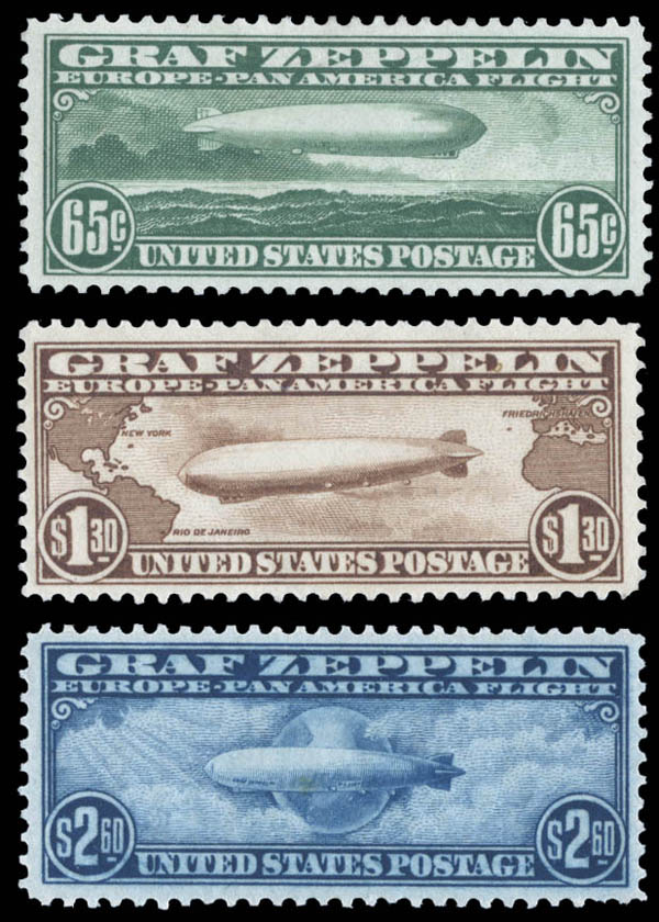 Lot 287![]() /![]() Airmail, 1918-33, all issues for the period complete including the Zeppelins (Scott C1-C18), in mounts on Schaubek hingeless pages. Nicely centered throughout, clean and attractive, o.g., a few never hinged including the $1.30 Zeppelin, Fine to Very Fine. Scott $1,665. Estimate $500 - 750. |