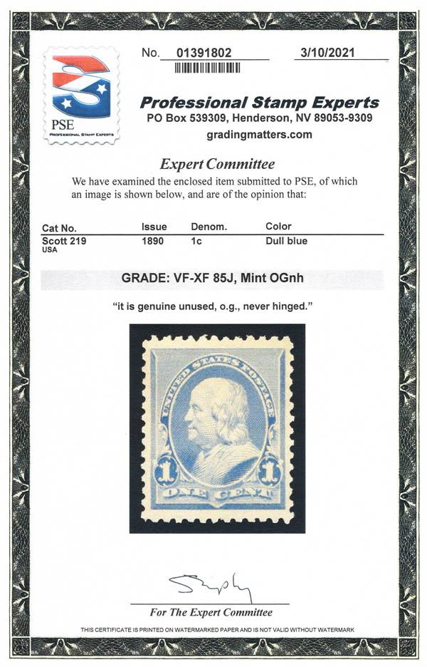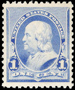 1890, 1¢ Franklin, dull blue (Scott 219), VF-XF 85. Scott $70. SMQ $180.