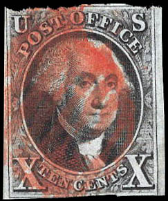 1847, 10¢ Washington, black (Scott 2), 2ème choix/décentré. Scott $950.