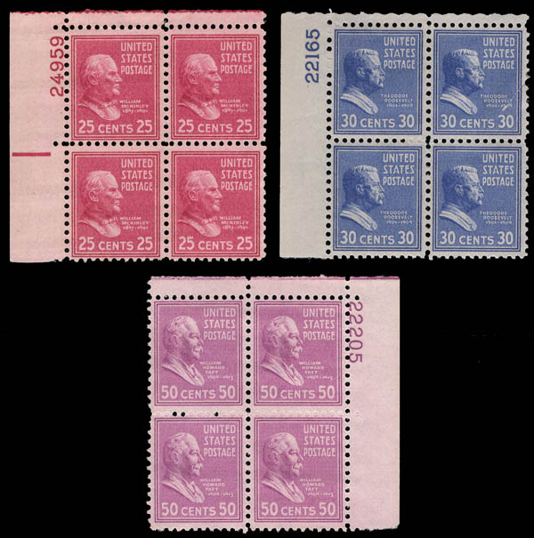 1938, Presidentials, ½¢ to 50¢ (Scott 803-831), set of 29, beau à très beau. Scott $233.