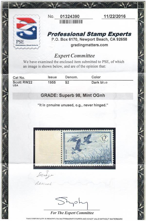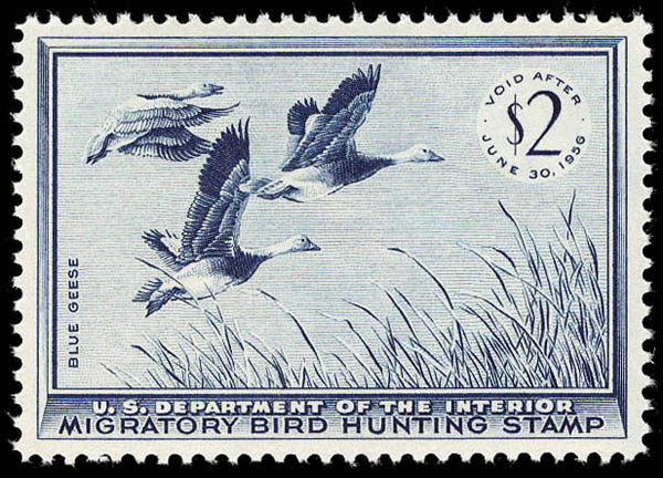 Federal Duck Stamp, 1955, $2 Blue Geese (Scott RW22), superbe. Scott $85. SMQ $350.