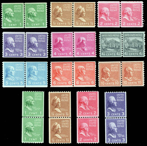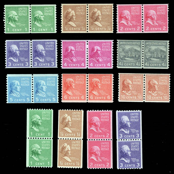 1939, Presidential coils complete (Scott 839-851), beau à très beau. Scott $213.