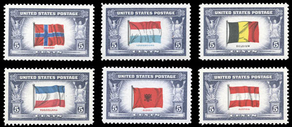 1943, 5¢ Overrun Countries: Norway, and 5 other high-quality commemoratives (Scott 911), superbe.