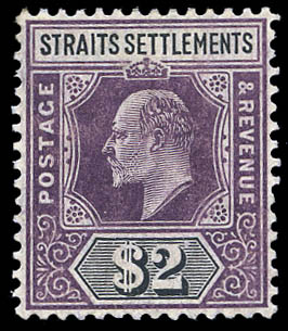 Malaysia: Straits Settlements, 1905, King Edward VII, $2 dull purple & black, Multiple Crown CA watermark (SG 137. Scott 125), très beau. SG £130 ($170). Scott $120.