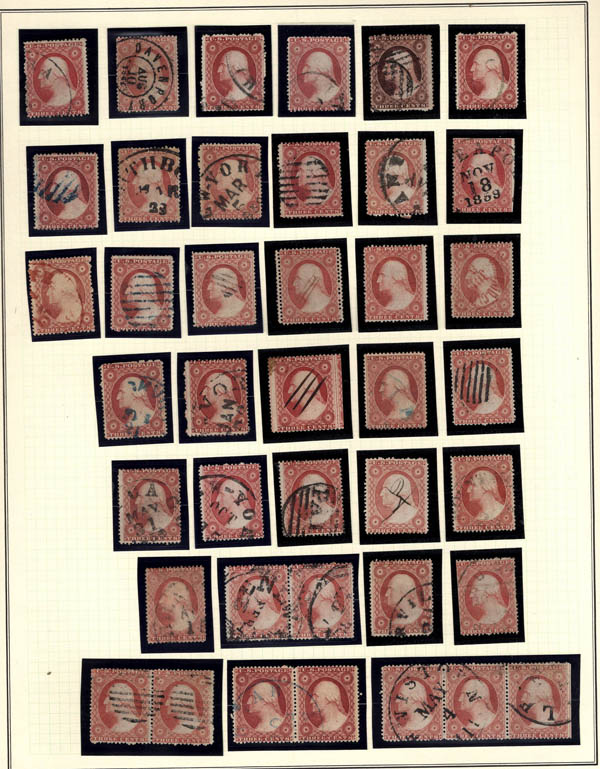 1857, 3¢ Washington, dull red, type III, a group of 40 stamps (Scott 26), beau à très beau. Scott $400.