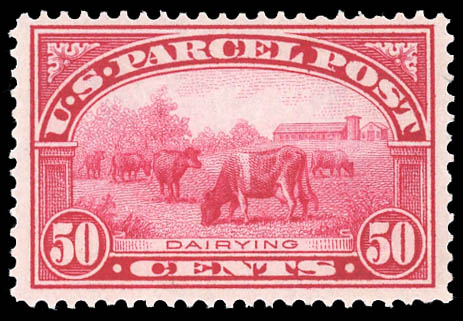 Parcel Post, 1913, 50¢ Dairying (Scott Q10), presque très beau. Scott $210.