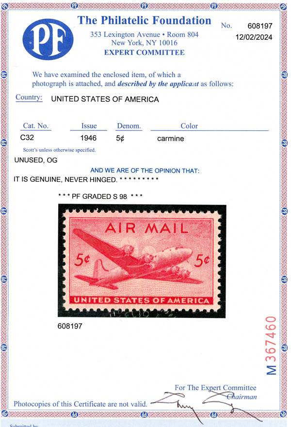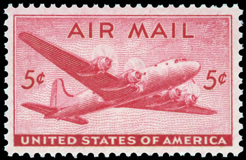 Airmail, 1946, 5¢ DC-4 Skymaster (Scott C32), SUP 98. SMQ $125.