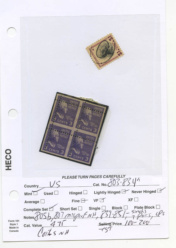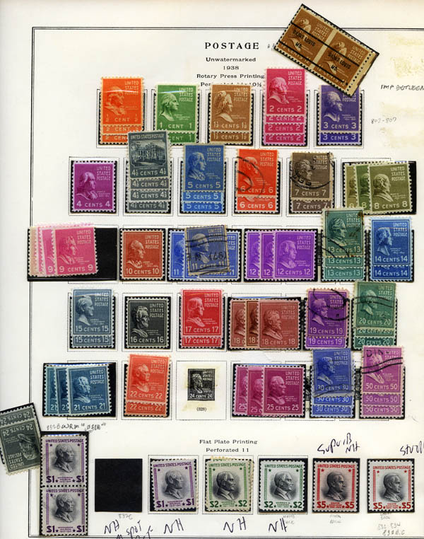1938-39, Presidentials, ½¢ to $5 complete, including coils (Scott 803-834,839-851), beau à très beau.