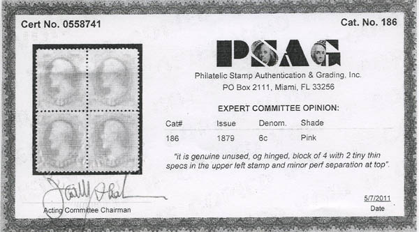 1879, 6¢ Lincoln, pink, A.B.N.C. printing (Scott 186), beau. Scott $900.