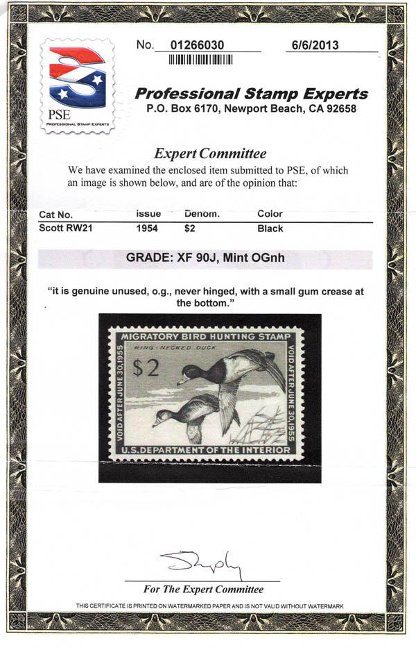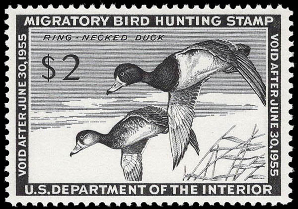 Federal Duck Stamp, 1954, $2 Ring-necked Ducks (Scott RW21), XF 90 J. Scott $85. SMQ $210.