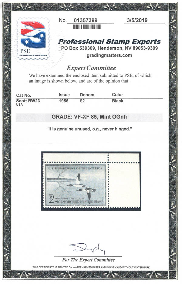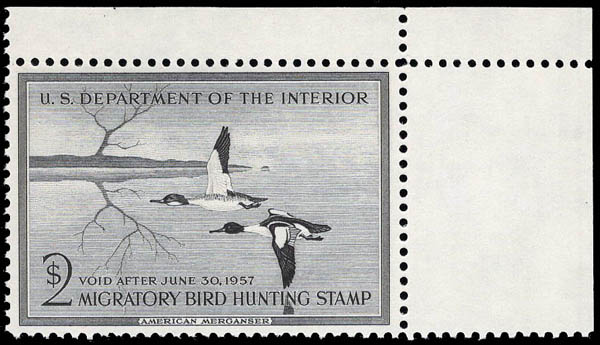 Federal Duck Stamp, 1956, $2 American Merganser (Scott RW23), VF-XF 85. SMQ $110.