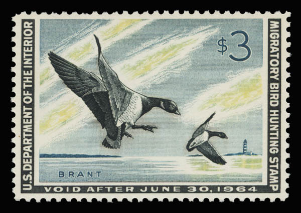 Hunting Permit, 1963, $3 Brants (Scott RW30), o.g., never hinged, Extremely Fine.