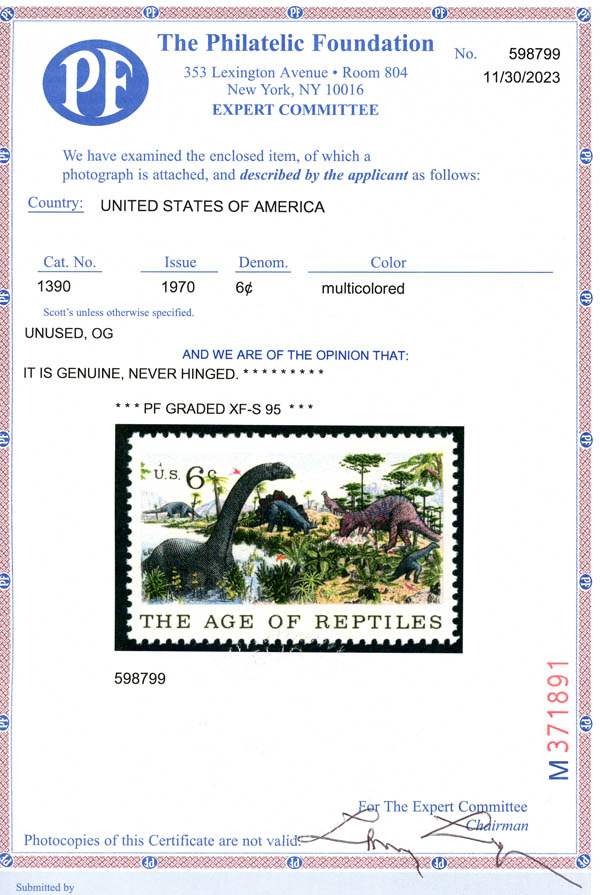1970, 6¢ Natural History: The Age of Reptiles (Scott 1390), XF-SUP 95.