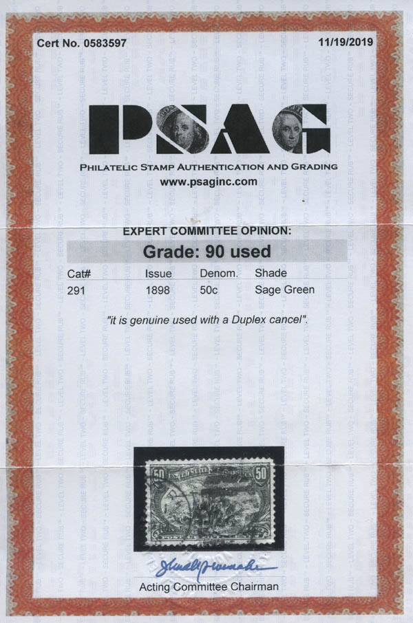 1898, 50¢ Trans-Miss. (Scott 291), superbe. Scott $175. SMQ $500.