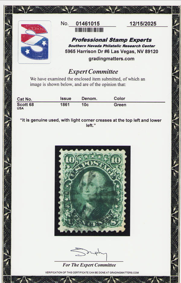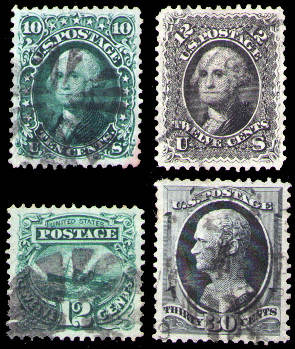 1861-73, a group of 4 beautifully well centered used stamps (Scott 68, 69, 117, 165), superbe d'aspect. Scott $440.