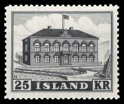Scandinavia: Iceland, 1952, 25kr Parliament Building (Scott 273), superbe. Scott $200. Michel 277. Facit 311.