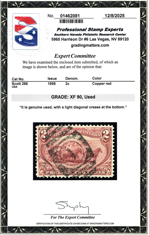 1898, 2¢ Trans-Miss. (Scott 286), XF 90. SMQ $175.