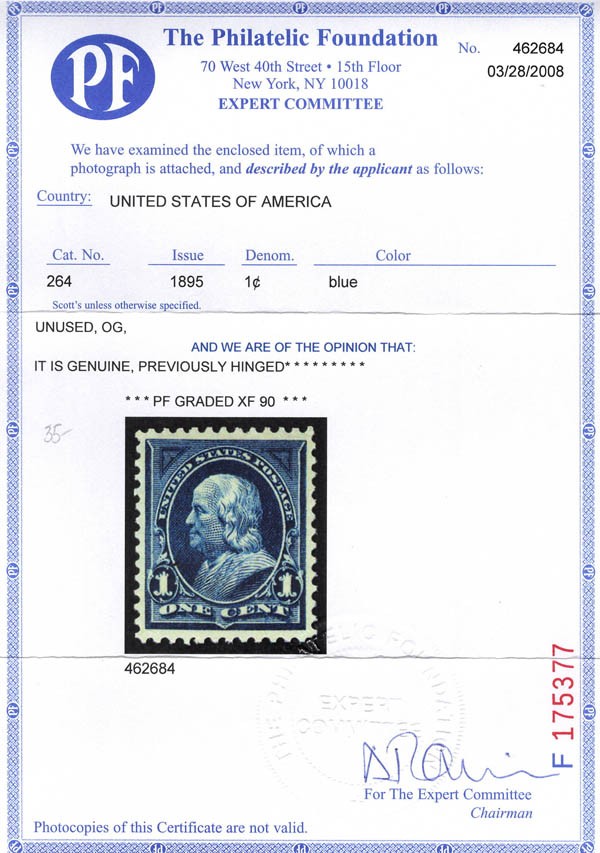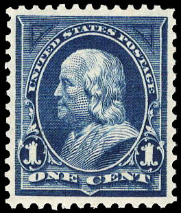1895, 1¢ Franklin, blue, D.L. watermark (Scott 264), XF 90. Scott $6. SMQ $35.
