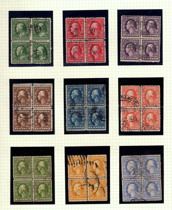 1910-11, Washington-Franklins, S.L. watermark, 1¢ to 13¢ complete (Scott 374-382), beau à très beau. Scott $334.