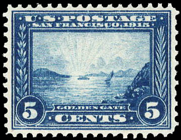 1913, 5¢ Panama-Pacific, perf. 12 (Scott 399), VF-XF 85. Scott $160. SMQ $215. Scott Stamp Values $220.