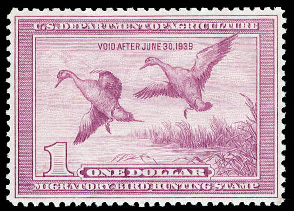 Hunting Permit, 1938, $1 Pintail Drakes (Scott RW5), superbe. Scott $425.
