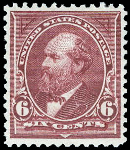 1895, 6¢ Garfield, dull brown, D.L. watermark (Scott 271), très beau ou miuex. Scott $110.