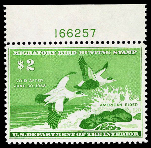 Hunting Permit, 1957, $2 American Eider (Scott RW24), très beau. Scott $85.