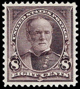 1895, 8¢ Sherman, violet brown, D.L. watermark (Scott 272), VF-XF 85. Scott $210. Scott Stamp Values $325. SMQ $325.