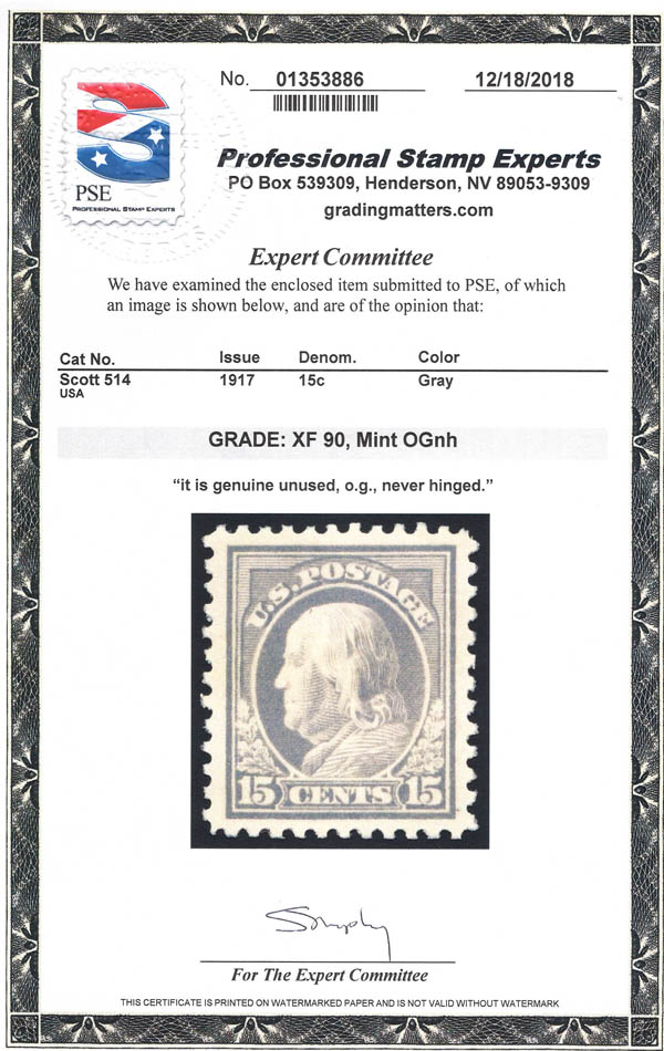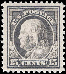 1917, 15¢ Franklin, gray, perf. 11 (Scott 514), XF 90. Scott $75. SMQ $150.