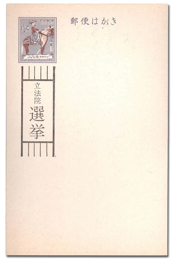 Ryukyus, Election Postal Card, 1970, 1½¢ 21st District Special Election (Scott UZE28), mint (and rare thus - it is only priced used, Very Fine.