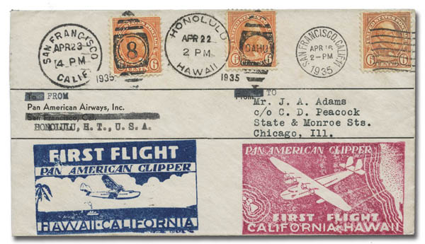 1935 (Apr 16), First Flight, California to Hawaii and back, très beau.