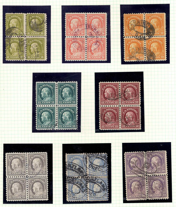 1916-17, 1¢ Washington to 50¢ Franklin, unwatermarked, perf. 10 (Scott 462//477), beau à très beau. Scott $1,634.