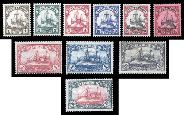 China: German Offices in Kiauchau, 1905-19, Kaiser's Yacht, 1¢ to $2½ complete (Scott 33-42), beau à très beau. Scott $94.