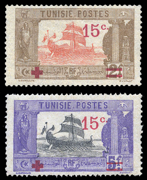 French Colonies: Tunisia, 1918, Prisoner of War semi-postal issue complete (Scott B12-B19), set of 8, beau à très beau. Scott $346.
