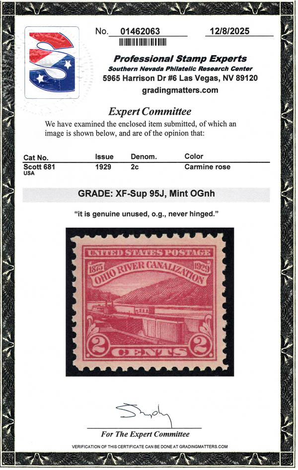 1929, 2¢ Ohio River Canalization (Scott 681), XF-SUP 95 J. SMQ $140.